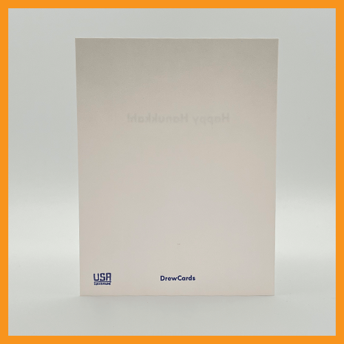 The box set includes 10 cards and 10 envelopes. The envelope color matches the color of the menorah.